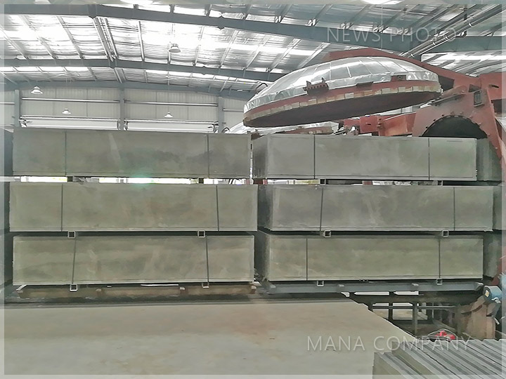 客户现场-100板 24块/模-发泡水泥墙板生产线-养护好的轻质条板