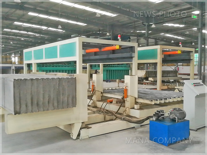 客户现场-100板 24块/模-发泡水泥墙板生产线-推板机 合板翻板机-板材出炉